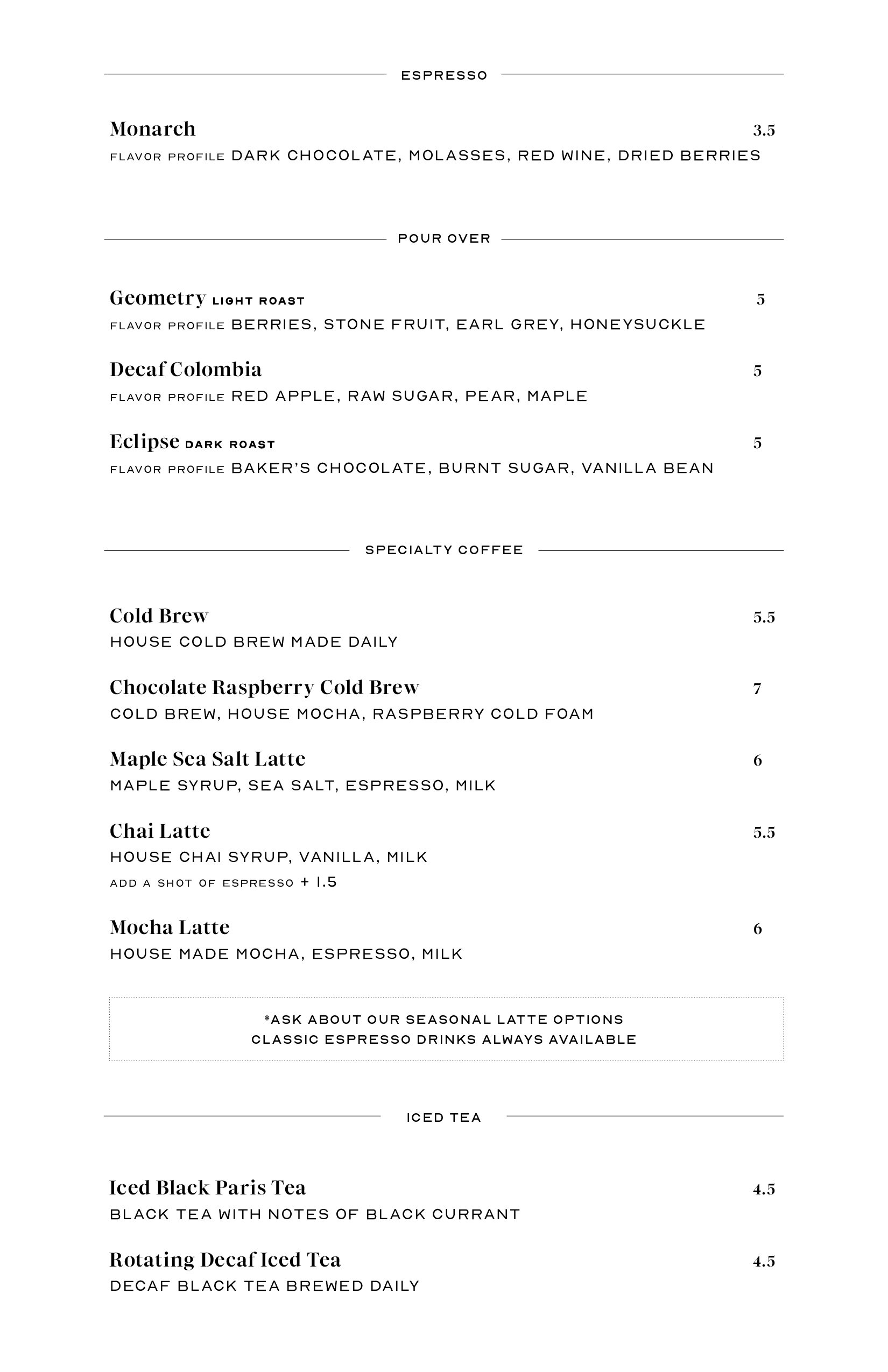 * Our kitchen is dedicated to crafting dishes from scratch, with a menu that evolves frequently to reflect the seasons and the finest ingredients available. Please note that the in-house menu may differ from what’s posted online.